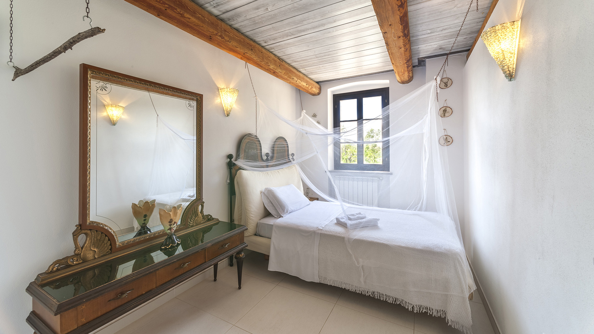 Casa Melograno si compone di due appartamenti indipendenti non comunicanti internamente. APPARTAMENTO 1. Il piano terra si apre sul soggiorno con salotto e area pranzo ben collegato alla cucina attrezzata e ad un bagno con vasca. Al primo piano sono dislocate una saletta tv, una camera matrimoniale ed una camera singola (con letto largo 110 cm) che condividono un bagno con doccia. Da qui una scala conduce al soppalco che ospita una camera matrimoniale. APPARTAMENTO 2. Al piano terra si sviluppa un open space con salotto e sala da pranzo collegate alla cucina attrezzata. Al primo piano è dislocata la zona notte composta da due camere matrimoniali, una camera doppia e due bagni con doccia. Sull’ampio soppalco si trova il divano letto matrimoniale. La lavanderia è posta su un fianco della casa, accessibile dall’esterno.