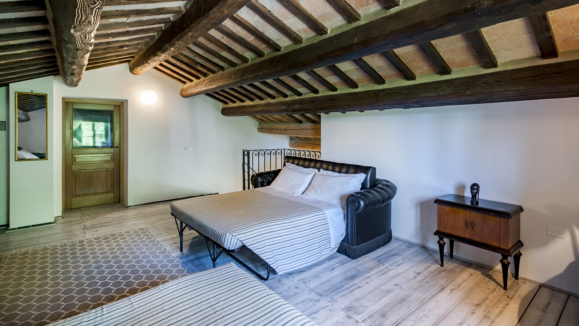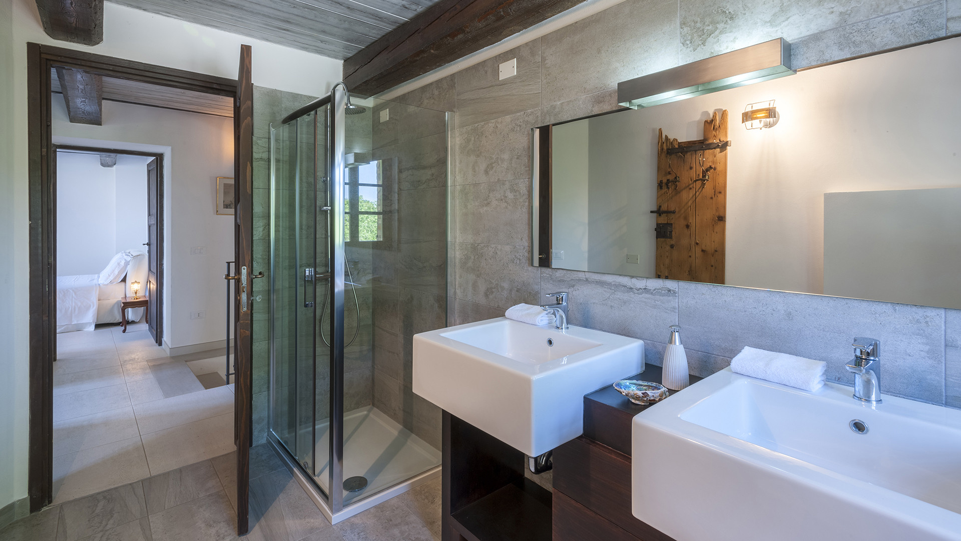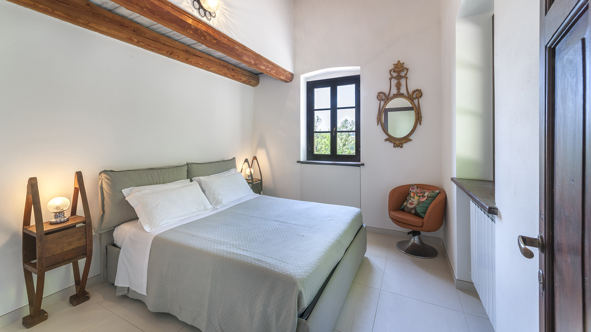 L’area piscina è collocata sul retro del casale, da cui dista meno di 10 m. È una piscina di forma ovale che richiama la conformazione naturale di un laghetto. Misura 5 x 10 m e la profondità varia da pochi centimetri fino a 1,5 m; vi si accede attraverso un ingresso a declivio, molto comodo per i bambini. È depurata a sale e rivestita in resina. È circondata da una larga area solarium, dove sono posizionati i lettini e le sdraio. La piscina resterà aperta dall’ultimo sabato di aprile fino al primo sabato di ottobre.