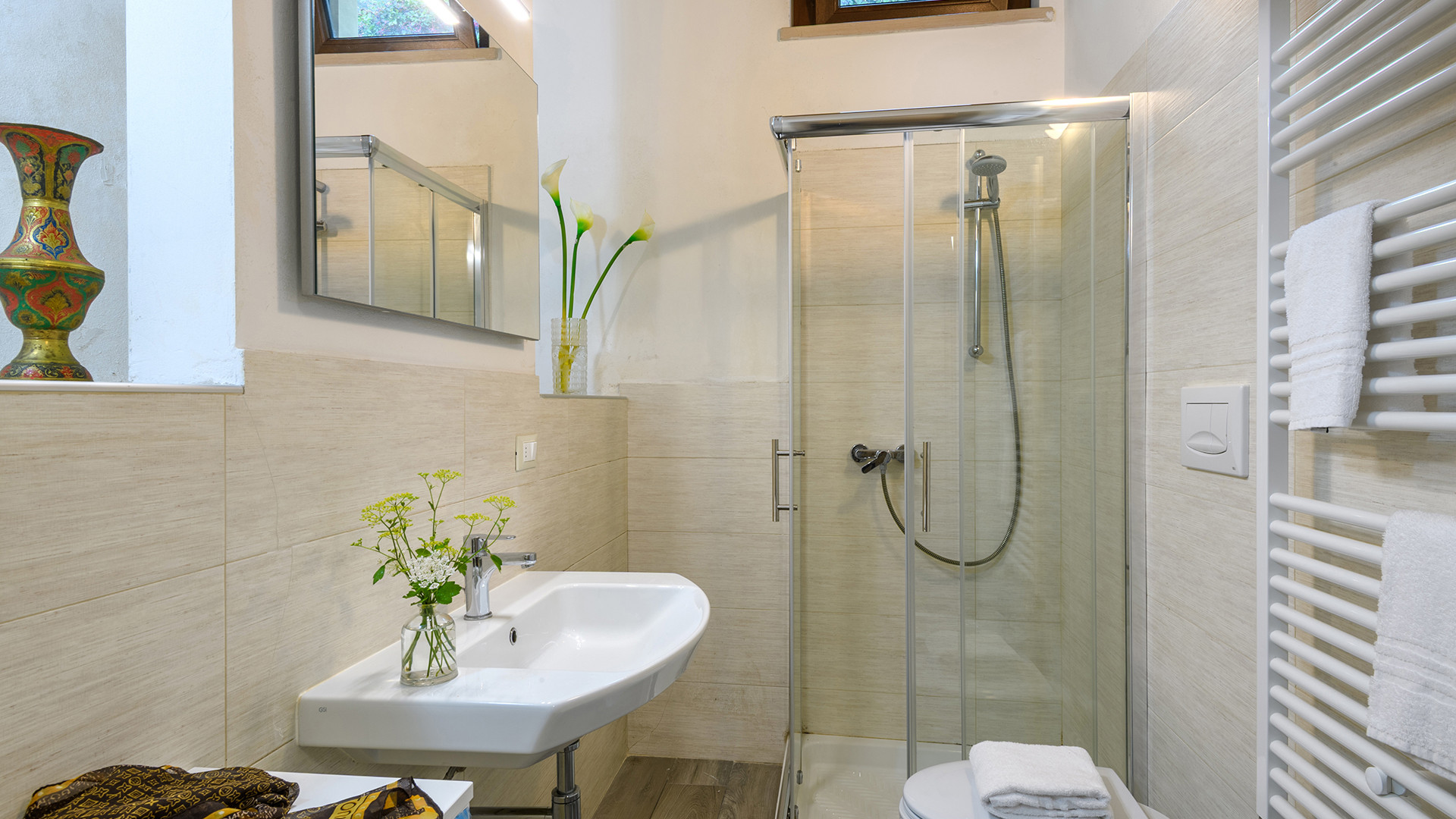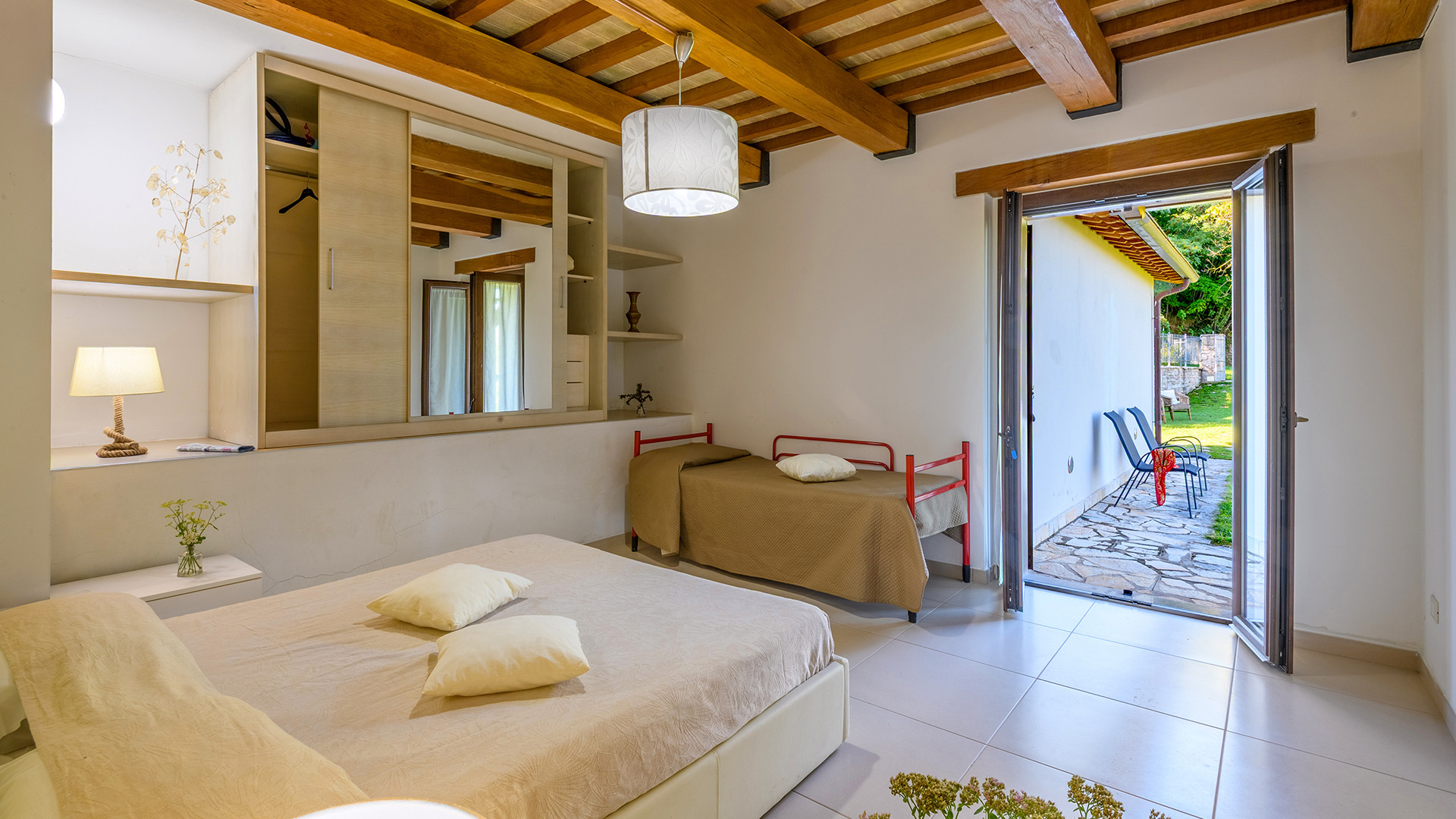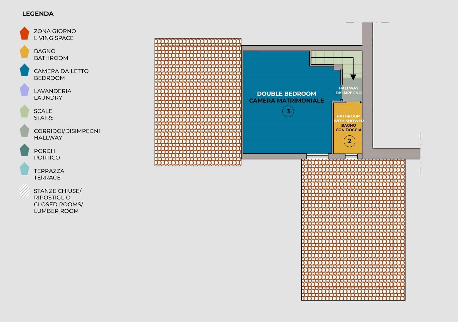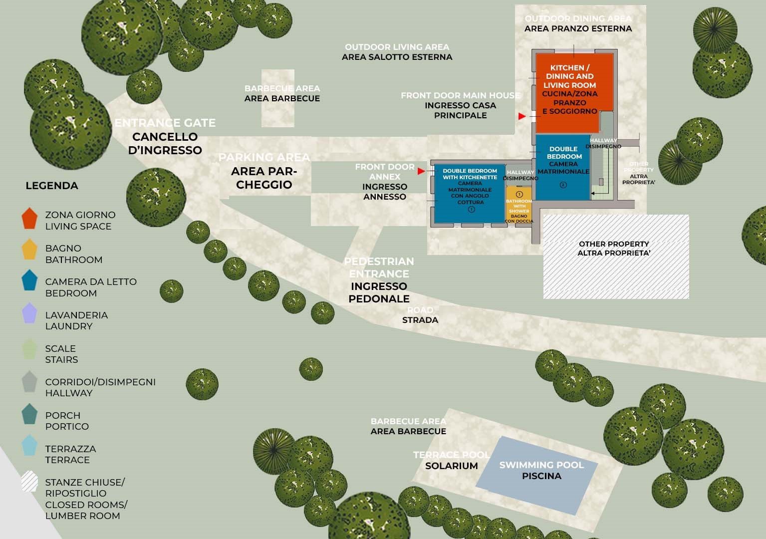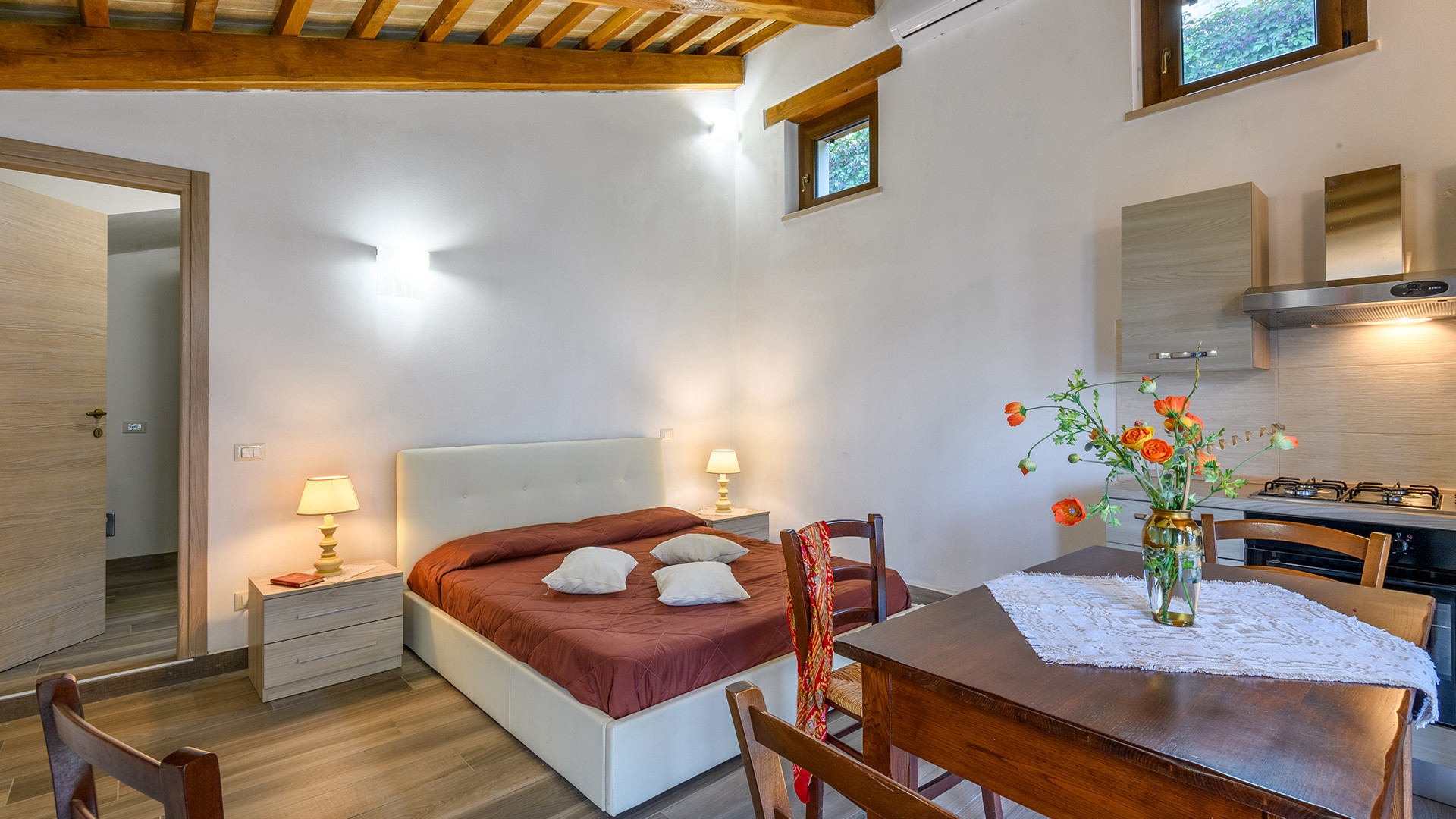 Da un ingresso separato, al piano terra, si accede ad una camera matrimoniale dotata di angolo cucina, nonché un bagno con doccia. Le caratteristiche di questo spazio lo rendono adatto per accogliere persone con disabilità.
