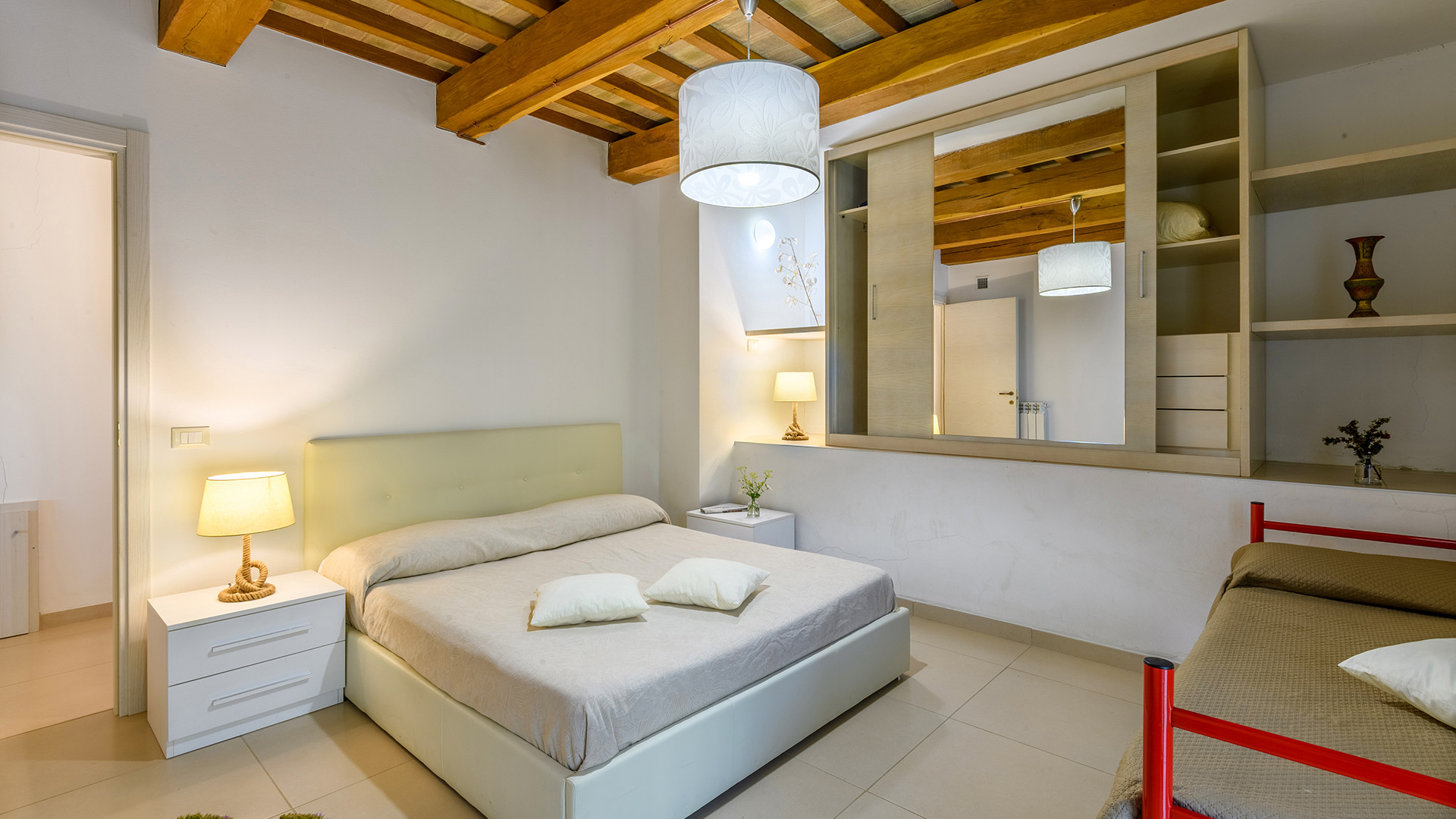 L’appartamento si sviluppa su due piani con living, due camere matrimoniali, una con poltrona letto e l'altra con divano letto singoli, e un bagno; da un ingresso separato si accede a una camera matrimoniale con bagno. Tutte le camere sono dotate di aria condizionata.