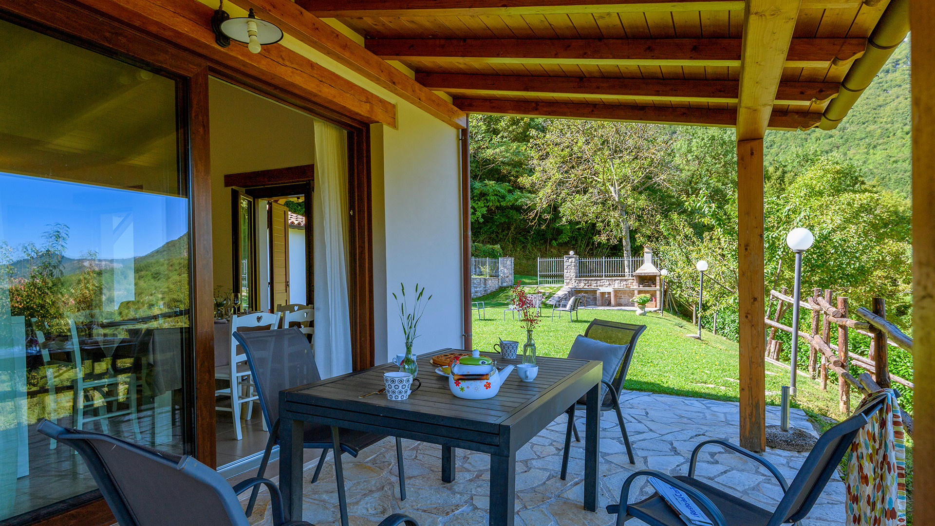 We have spent a week in this beautiful house up in the mountains, ideally located for hikes in the surrounding hills and gorge. It is a brand new house, with modern furniture and interior - including an open fireplace! The terrace overlooks the vallevedi di più