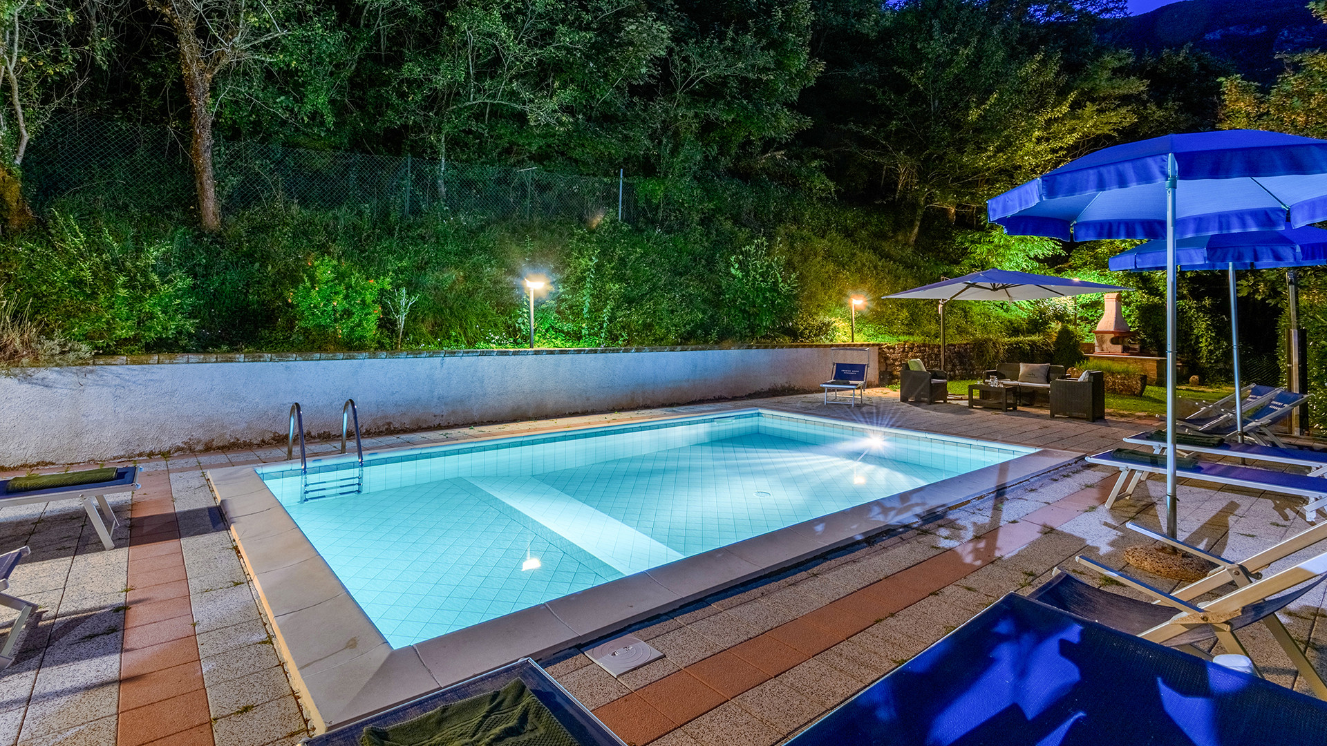 A qualche metro dalla proprietà, sull'altro lato della tranquilla strada, vi attende, circondata da piante ornamentali, un’ampia piscina attrezzata ad uso esclusivo degli ospiti , dove poter dedicare del tempo all'abbronzatura e a bagni rinfrescanti.