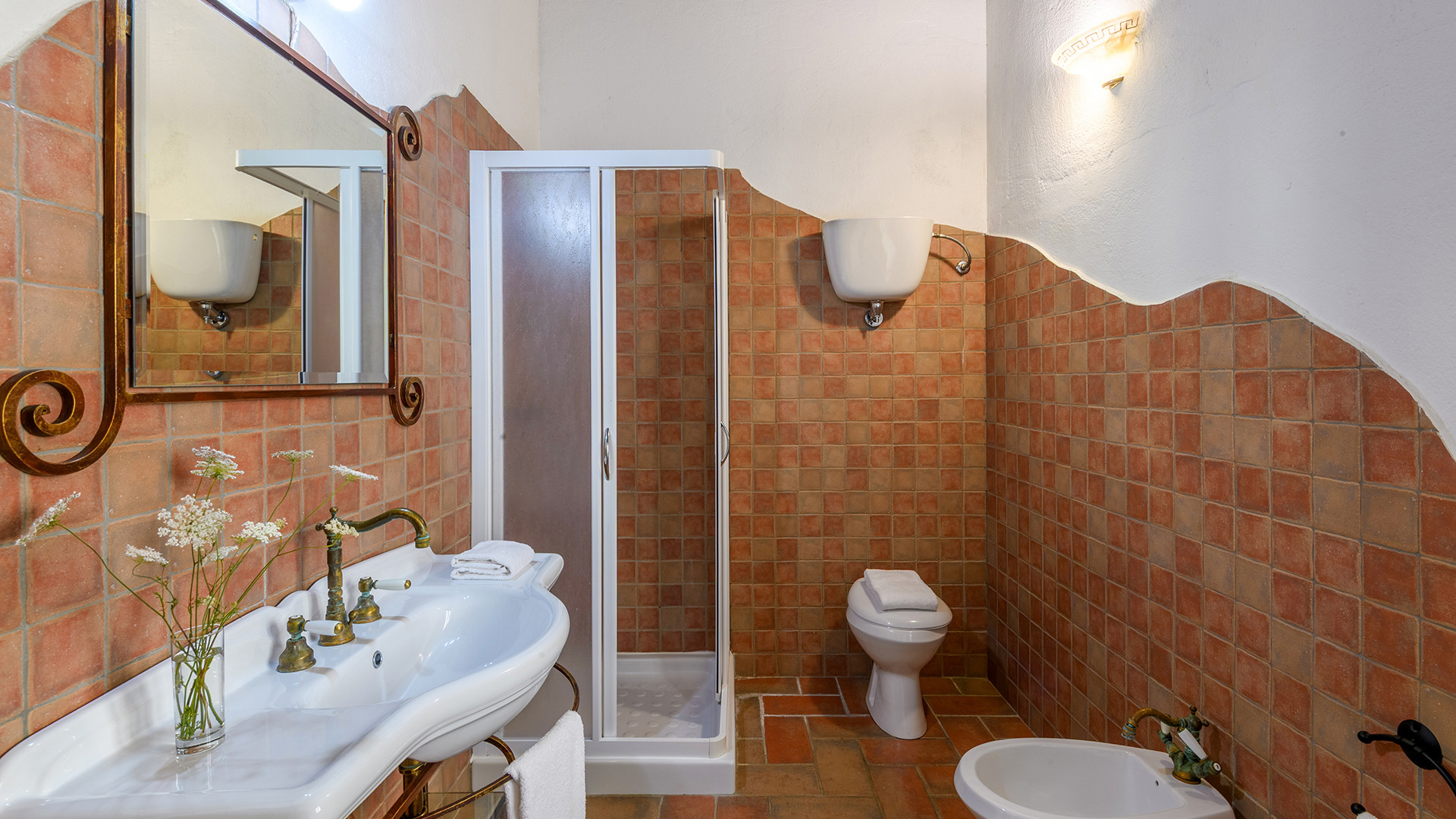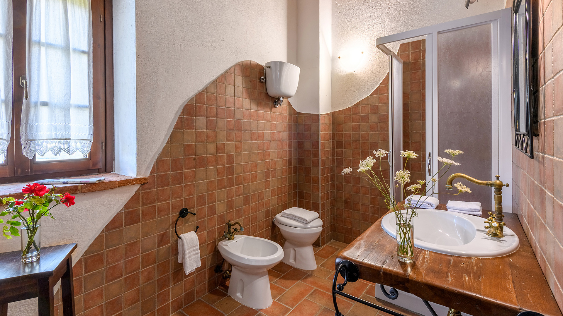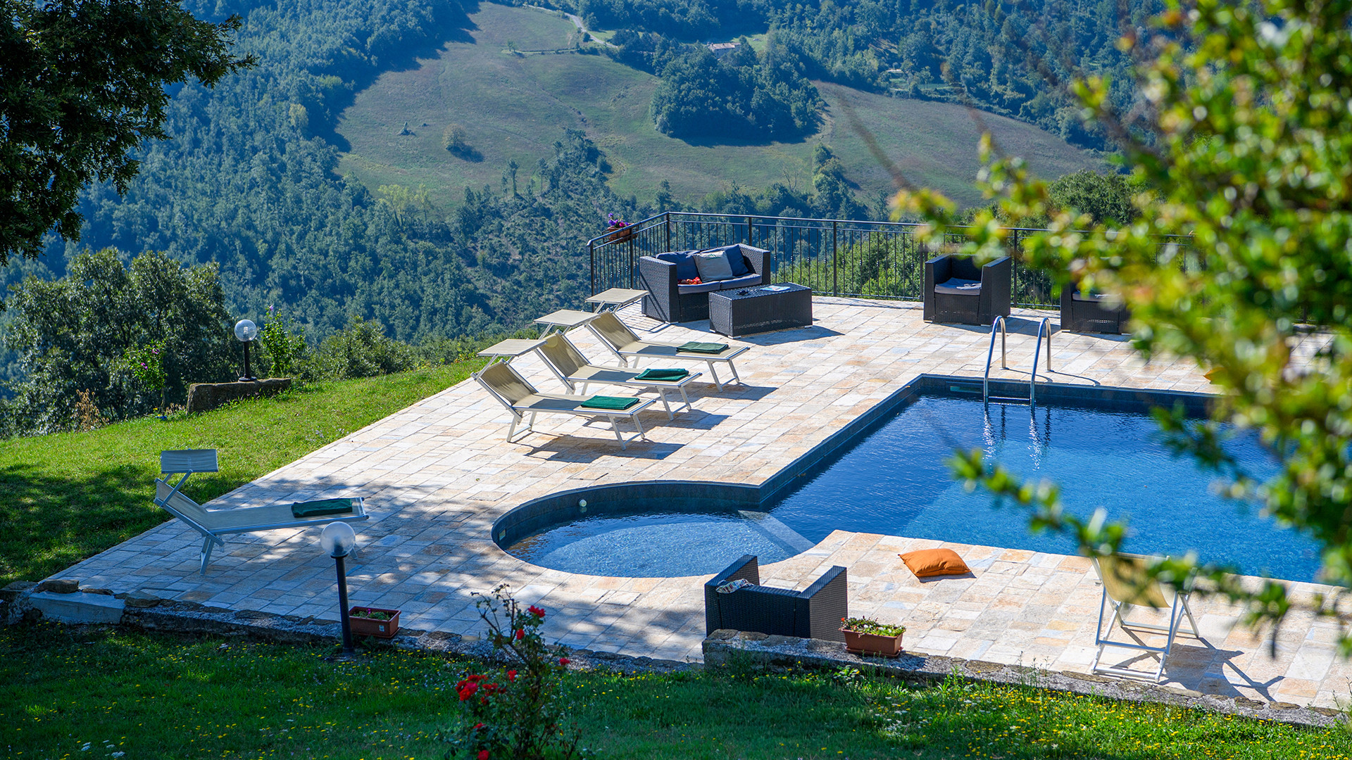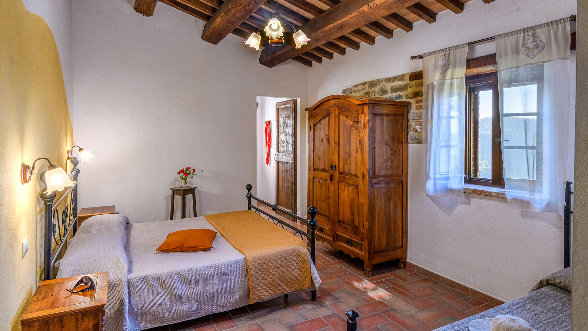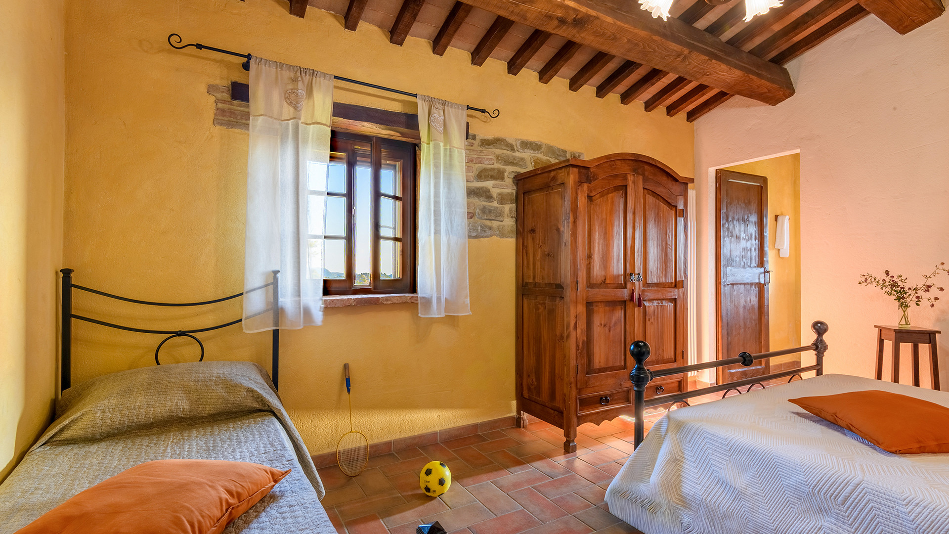 Das Anwesen ist in zwei geräumige Wohnungen mit jeweils eigenem Eingang aufgeteilt und bietet insgesamt fünf Schlafzimmer, alle mit eigenem Bad. FALCO (Erdgeschoss): Dieses Apartment verfügt über ein großes Wohnzimmer mit Kamin und Sofa, drei Doppelzimmer, zwei davon mit einem zusätzlichen Einzelbett, und drei private Badezimmer mit Dusche. Den Gästen steht eine private Loggia mit Tisch und Stühlen zum Essen und Entspannen im Freien zur Verfügung. PETTIROSSO (Erster Stock): Dieses Apartment verfügt über ein großes Wohnzimmer, zwei Doppelzimmer, eines davon mit einem zusätzlichen Einzelbett, und zwei private Badezimmer mit Dusche. Den Gästen steht ein Vorgarten mit einem Pavillon mit Tisch und Stühlen zur Verfügung, der sich perfekt für Mahlzeiten im Freien eignet.
