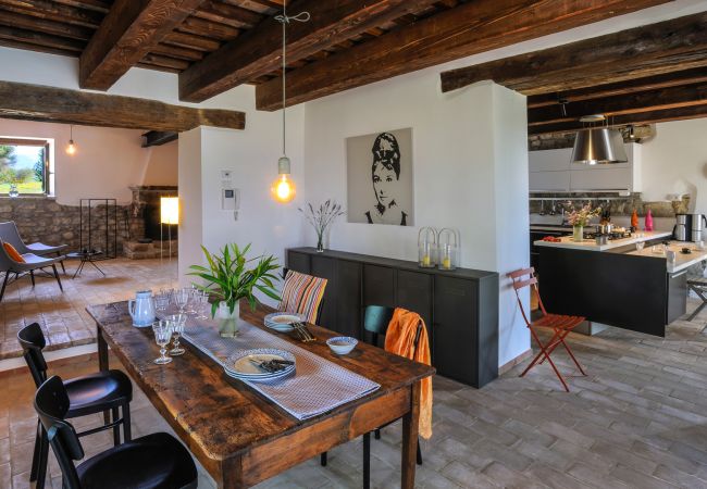 ACCOMMODATIE - Villa Zenit 8 is een gerenoveerde stenen boerderij, gelegen op een panoramische locatie te midden van het heuvelachtige landschap van de regio Marche. Bij de restauratie zijn de originele materialen behouden gebleven en geïntegreerd met moderne oplossingen gericht op comfort en functionaliteit. De woning garandeert een hoge mate van privacy en is volledig voorzien van airconditioning.
