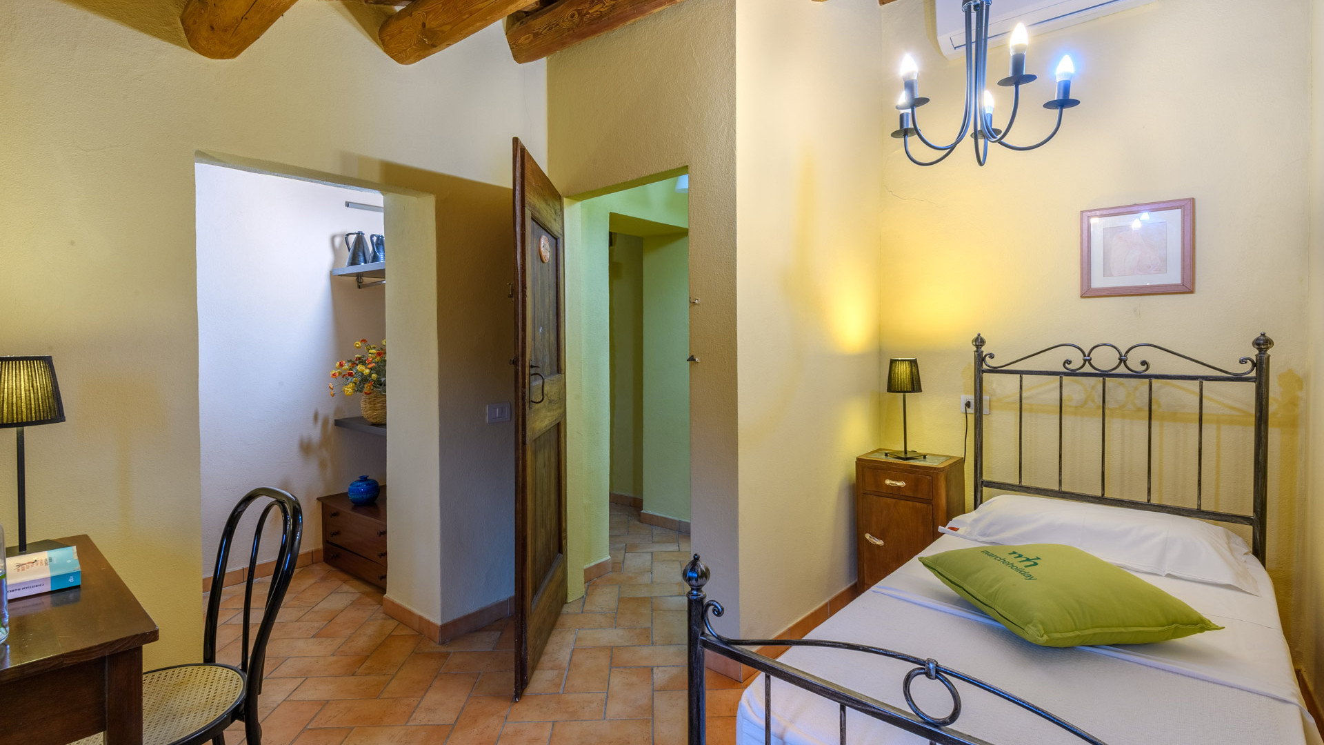 The villa has two floors, not internally connected, for a total area of about 180 sq m. GROUND FLOOR - Sitting room; living room with open-plan kitchen; single bedroom; twin bedroom with joinable beds; double bedroom; bathroom with tub and shower; bathroom with shower; panoramic balcony. LOWER FLOOR - Two double bedrooms; bathroom with shower. The laundry room is located in an adjacent room.